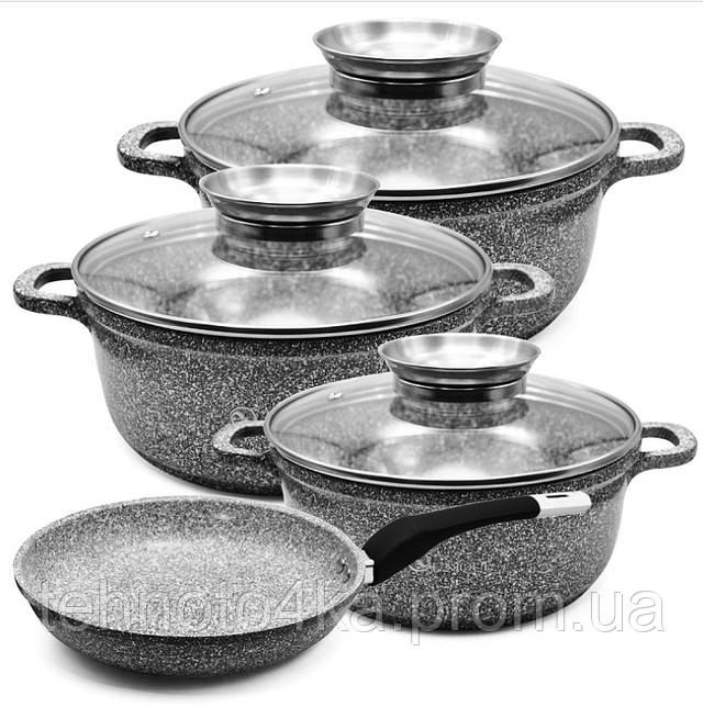 Кухонний набір посуду UNIQUE UN-5521 казани і сковорода (16см, 20см, 24см, круглі, сковорода 24см)