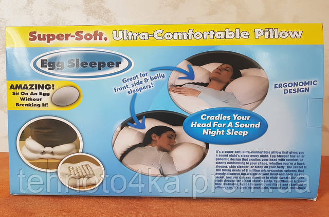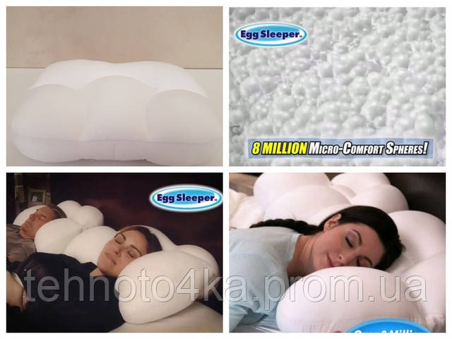 Анатомическая подушка для сна Egg Sleeper, имеющая особый наполнитель, обеспечит Вам комфортные условия для сна. Содержимое подушки представляет собой миллионы лёгких и маленьких шариков, наполненных воздухом, чувствующих форму Вашего тела и придающих ему корректное положение во время сна, предотвращая появление дискомфорта в спине, плечах, шее и голове.