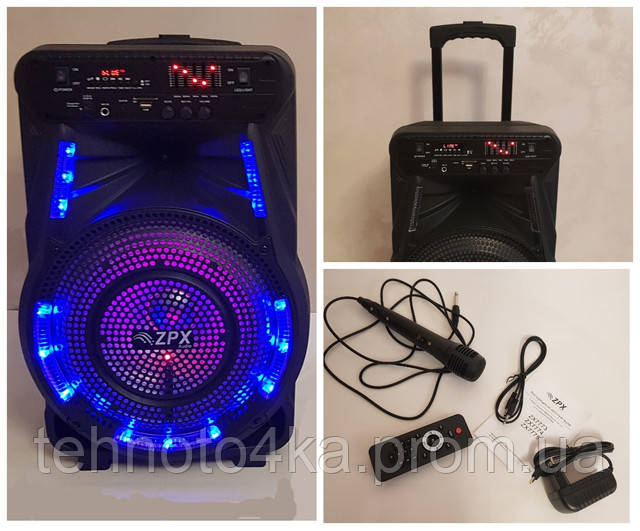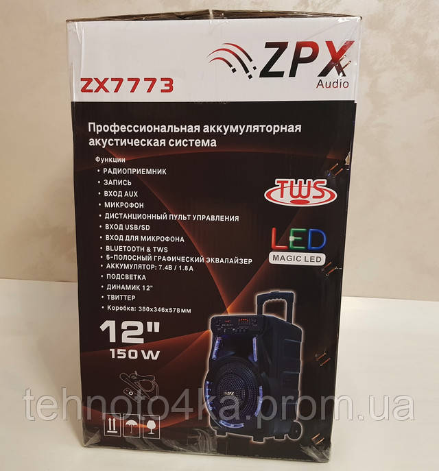 ZPX ZX-7773: 12x1 ДЮЙМІВ ДИНАМІК / USB / Bluetooth / FM-радіо / 1 мікрофон провідний / LED підсвічування !!!