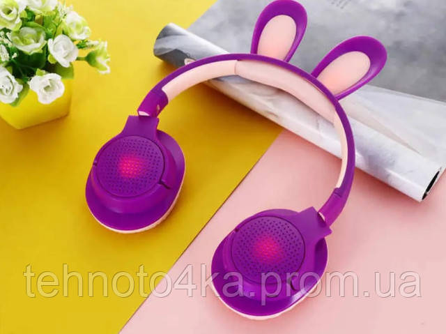 Бездротові навушники з підсвічуванням зайчики KT56 фіолетовий