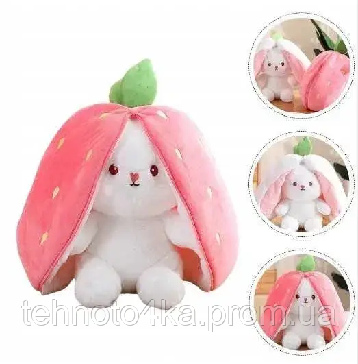 М'яка іграшка кролик полуничка з великими вухами дитячий плюшевий зайчик трансформер з довгими вухами