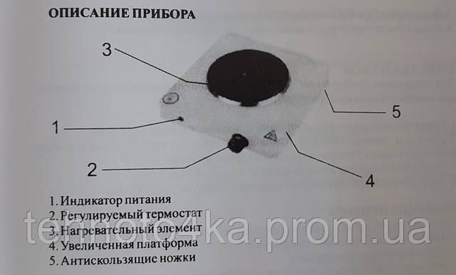 Плиту можно с легкостью транспортировать в любое подходящее место, ведь ее работоспособность зависит исключительно от наличия сети электропитания. Плита имеет одну утолщенную конфорку, спираль обеспечивает ее надежное прогревание и медленное ее остывание. Регулировать работоспособность плиты можно с помощью механического переключателя. Эмалевое белое покрытие плиты добавляет ей привлекательности в глазах тех пользователей, которые предпочитают классическое оформление бытовых приборов.