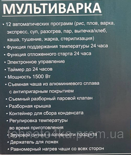 Багатофункційна мультиварка Rainberg RB-801 програм 12/ 6 л (1500W) пароварка