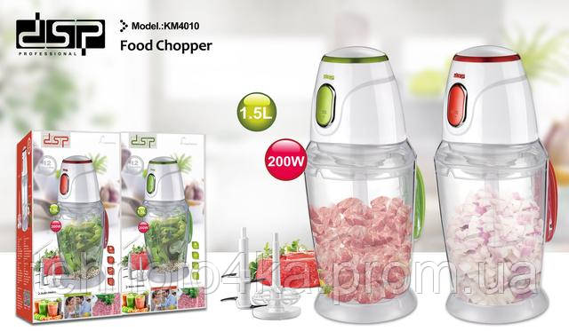 - Работоспособность измельчителя DSP KM4010 вызывает только положительные отзывы у покупателей, ведь в комплекте идут 2 насадки-ножа для измельчения и перемалывания самых разных продуктов: овощи, фрукты, сыр, мясо, рыбу, кофейные зерна и т.д.