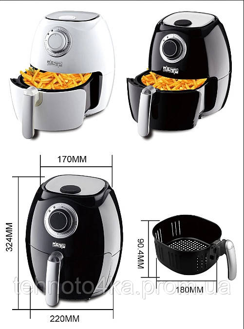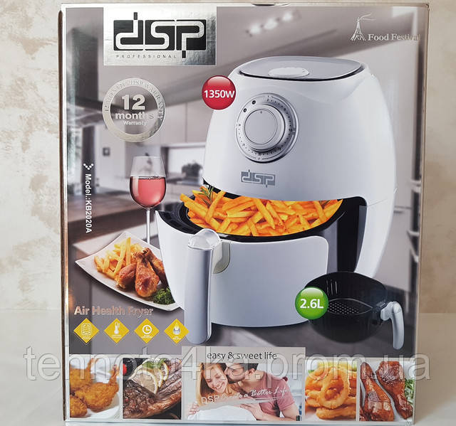 С удовольствием представляем вашему вниманию новую воздушную фритюрницу DSP Air Health Fryer KB2020, которая позволяет приготовить вкусную хрустящую картошечку фри без канцерогенов, холестерина и прочих вредных "штук". Съемная чаша с антипригарным покрытием имеет объем 2,6 литра. Ручка на чаше позволяет удобно извлекать готовое блюдо из фритюрницы.